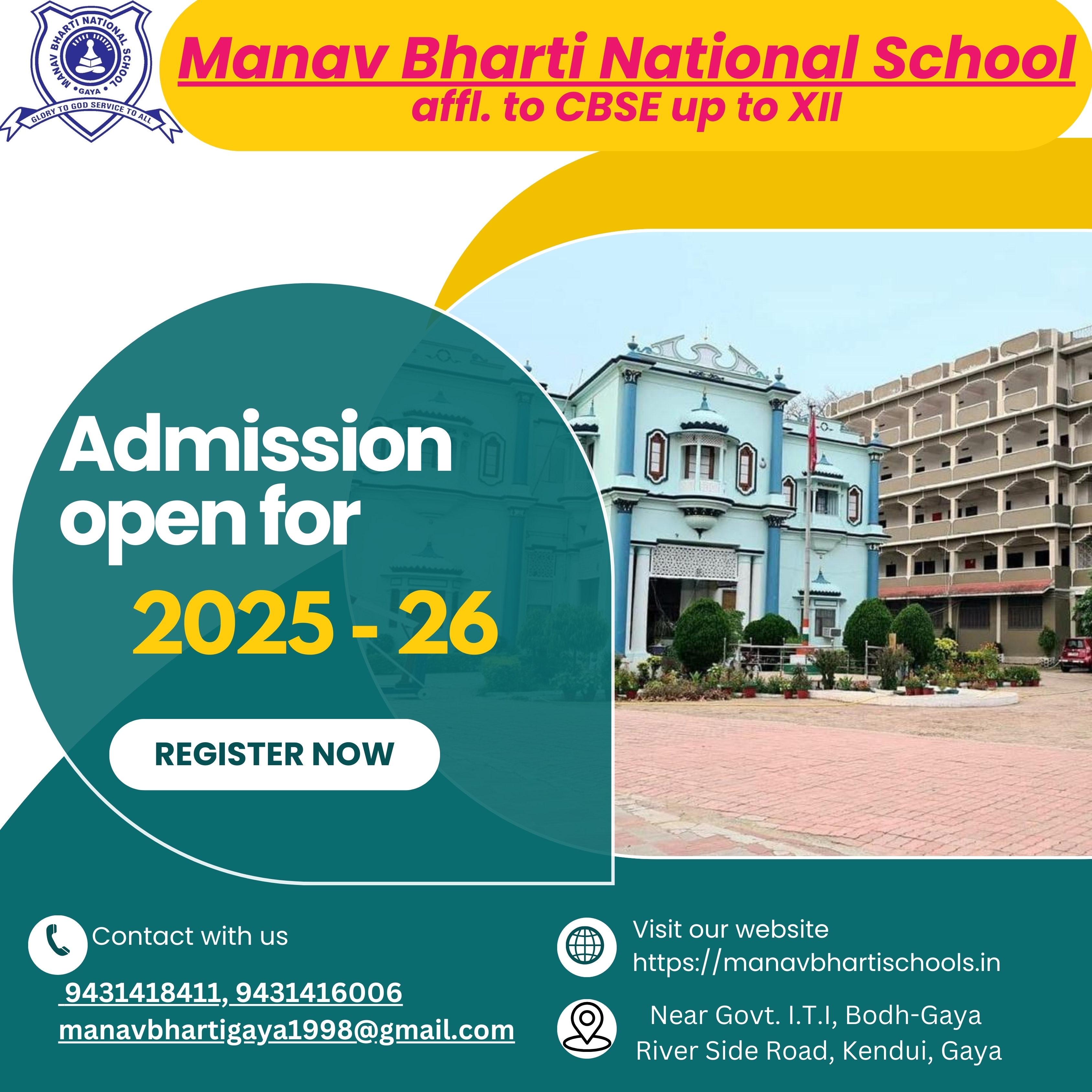 Established in 1998, Manav Bharti National School is a co-educational, English medium day school dedicated to providing high-quality education that nurtures the academic, social, and personal growth of every student. Recognized by the Central Board of Secondary Education (CBSE), New Delhi, our school offers a robust curriculum designed to empower students at the secondary level and prepare them for future success. Our campus, located in Kendui near Govt. ITI on Bodhgaya Road, Gaya, boasts a spacious, well-designed building with a secure high boundary wall. The school is equipped with state-of-the-art facilities, including a fully furnished administrative block, an exte